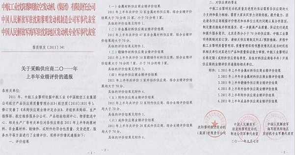 10月17日一早, 中航工業(yè)沈陽黎明航空發(fā)動機(集團)有限公司發(fā)來賀電:祝賀世林膠業(yè)在2011年上半年非金屬材料供應商綜合評價結(jié)果中各項指標均為滿分!
